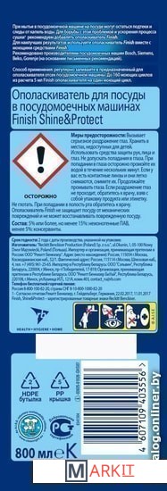 Markit » Средства для посудомоечных машин » Ополаскиватель для посудомоечной машины Finish Shine & Protect (800 мл)