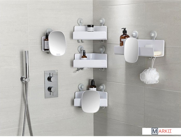 Эта компактная полочка для душа с зеркалом поможет навести порядок в ванной.Органайзер с простой дренажной конструкцией легко установить без интрументов, так как он держится на присосках. Выдерживает до 3,5 кг веса. Полочка достаточно большая, чтобы вместить ваши бутылки и тюбики. Она оснащена крючками для станков и губок, а также съемным небьющимся зеркалом