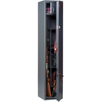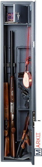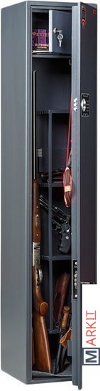 Предназначен для хранения огнестрельного оружия. - толщина металла корпуса и двери – до 2 мм- оборудован патронным отделением, запирающимся на ключ, полками и ложементами для ружей- комплектуется кодовым электронным замком PLS-3.2 (Промет) + ключевым замком- максимальная высота ствола 1454 мм- конструкция патронного отделения позволяет размещать оружие, задействуя всю высоту сейфа- наличие анкерных отверстий для крепления сейфа к стене