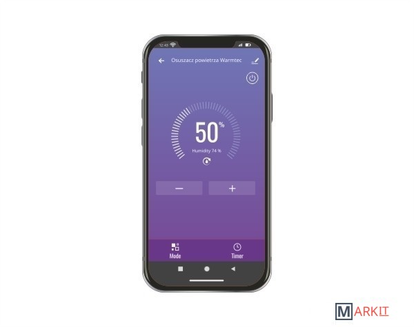 ВНИМАНИЕ! Устройство работает только в диапазоне 2,4 ГГц.возможность работы через сеть Wi-Fi,электронная регулировка уровня влажности,площадь сушки до 40 м 2сигнализация о полном баке,возможность работы в режиме непрерывной сушки,24-часовой таймер,функция автоматической разморозки,защита от немедленного перезапуска компрессора,возможность подключения сливного шланга и работы в режиме непрерывного слива (шланг в комплекте),zmywalny filtr,колесики для легкого перемещения устройства,