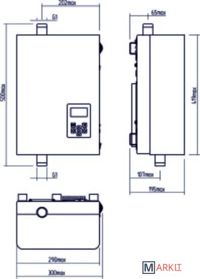 Модель не имеет встроенного циркуляционного насоса и расширительного бака.
