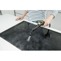 Функция VapoHydro (примешивание в струю пара горячей воды) значительно облегчает удаление и смывание стойких загрязнений. Регулятор подачи пара обеспечивает оптимальную адаптацию к виду очищаемой поверхности и ее загрязненности, а съемный бачок для дозаправки водой исключает перерывы в работе. Кроме того, аппарат оснащен отсеками для хранения кабеля и принадлежностей, а также позволяет «запарковать» насадку для пола на время перерыва в работе. Без применения бытовой химии он способен навести чистоту во всем доме. Благодаря разнообразию принадлежностей аппарат эффективно очищает керамическую плитку, кухонные плиты, вытяжки и даже узкие щели. Насадка для пола EasyFix оснащена шарниром, облегчающим выполнение работ, и имеет пластинчатую подошву, гарантирующую превосходные результаты уборки. При этом микроволоконная салфетка для пола легко устанавливается на насадке и снимается с нее благодаря креплению липучкой.