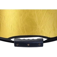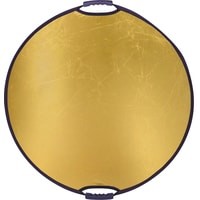Односторонний круглый отражатель, цвет – золотистый. Диаметр 82 см, используется в предметной, портретной и других видах съемок для подсветки теней или создании светового акцента.Золотистая поверхность придает отраженному свету золотистые тона, добавляет теплого света в сцену.Стальной упругий каркас прошит по периметру капроновым карманом, диаметр отражателя в сложенном виде – 30 см. Две рукоятки, закрепленные на каркасе, оборудованы отверстиями с резьбой 1/4", что позволяет закрепить отражатель на штативах, стойках или любых других опорах, без использования специального держателя.