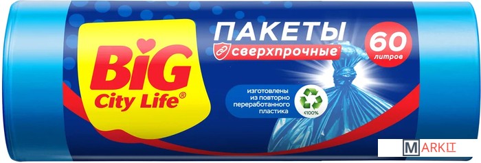 Markit » Пакеты для мусора » Пакеты для мусора Big City Life 60 л (10 шт, синий)