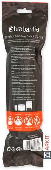 Мешок для мусора PerfectFit, код J, 23 литра, 10 штук в рулоне.Мешки для мусора Brabantia PerfectFit специально изготовлены для баков Brabantia и идеально подходят к ним по размеру. Очень прочные, со стягивающей лентой, потянув за которую, Вы легко достанете мешок из бака и, стянув горловину, легко вынесете мусор. Для выбора мешков нужного размера используйте буквенно-цветовой код на внутренней поверхности крышки Вашего бака. Идеально опрятно, идеально удобно!Идеально "по фигуре".Идеально подходят по размеру - специально изготовлены для баков Brabantia...Не рвутся - изготовлены из очень прочного пластика.Всегда опрятный внешний вид - при закрытой крышке мешок не виден.Удобно достаются из бака и переносятся - стягивающая лента.Удобная замена мешка - специальные вентиляционные отверстия, предотвращающие образование воздуха.Всегда нужный размер - цветовая кодировка.