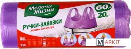 Markit » Пакеты для мусора » Пакеты для мусора Мелочи Жизни 60л с ручками-завязками (20шт)
