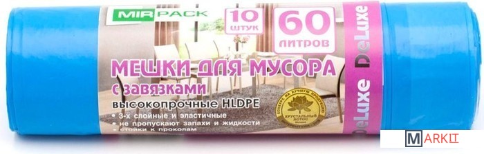 Markit » Пакеты для мусора » Пакеты для мусора Mirpack Deluxe с завязками 35 мкм 60 л (10 шт)