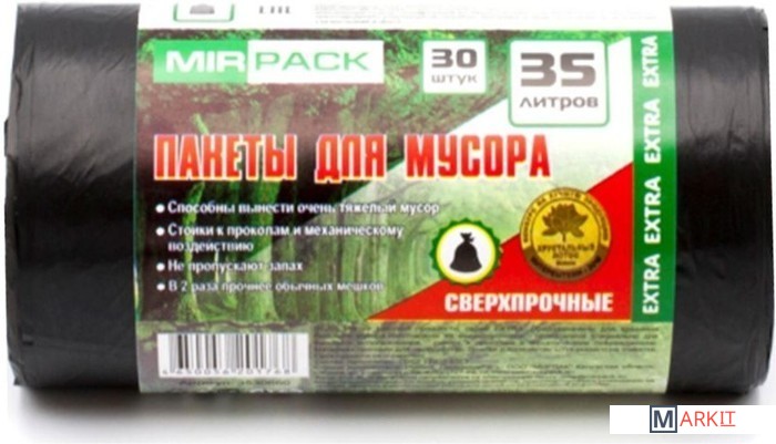 Markit » Пакеты для мусора » Пакеты для мусора Mirpack Extra 12 мкм 35 л (30 шт, черный)