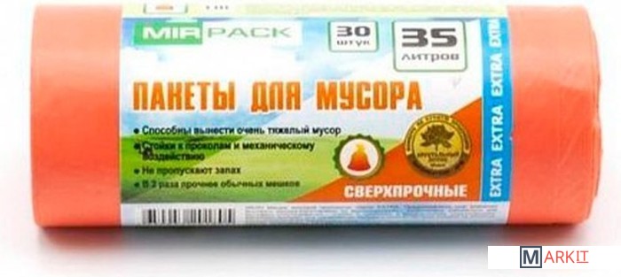Markit » Пакеты для мусора » Пакеты для мусора Mirpack Extra 12 мкм 35 л (30 шт, оранжевый)