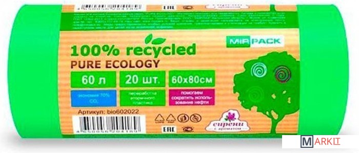 Markit » Пакеты для мусора » Пакеты для мусора Mirpack Pure Ecology Био 25 мкм 60 л (20 шт)
