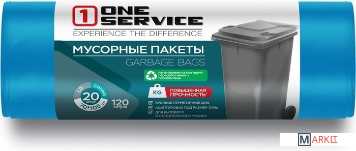 Markit » Пакеты для мусора » Пакеты для мусора One Service 21 мкм 120 л 14410200 (20шт синий)