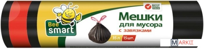 Markit » Пакеты для мусора » Пакеты для мусора Paclan Beesmart с завязками 35 л 403015 (15 шт, черный)