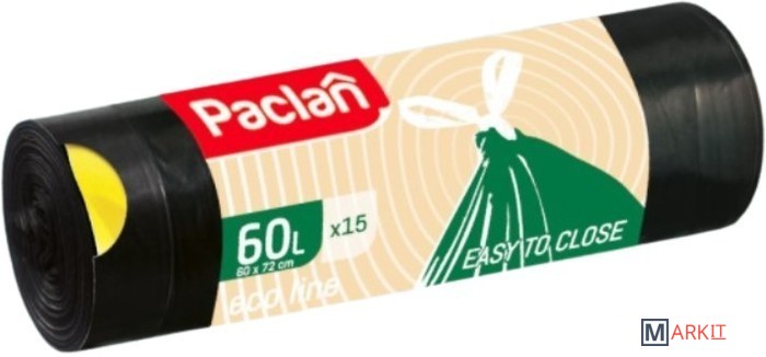 Markit » Пакеты для мусора » Пакеты для мусора Paclan Eco Line с тесьмой 60 л (15 шт, черный)