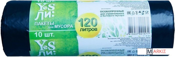 Markit » Пакеты для мусора » Пакеты для мусора Yesли 25 мкм 120 л (10 шт)