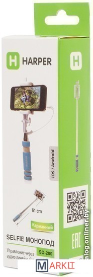 Телескопический монопод для селфи HARPER SO-200 выгодно отличается компактными размерами в собранном состоянии, небольшим весом, а также широким выбором цветов ручки с ярким дизайном.Максимальная длина монопода – 61 см, в собранном состоянии (телескопическая штанга сложена, держатель повернут вдоль штанги) вместе с ручкой – 13,5 см. В таком виде монопод SO-200 легко поместится даже в карман штанов, не говоря уже о сумке или рюкзаке.