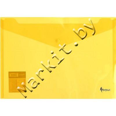 Папка-конверт пластиковая на кнопке Forpus, толщина пластика 0,16 мм, прозрачная желтая Код: 32876