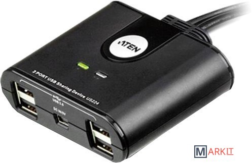 Переключатель ATEN US224 позволяет 2 компьютерам совместное использование 4 USB-устройств: клавиатуры, мыши и до двух периферийных устройств. Это исключает дополнительные затраты на приобретение USB-периферии для каждого компьютера. Конструкция переключателя «все-в-одном» помогает избежать проблемы спутанных проводов: не нужно подключать 2 отдельных USB-кабеля к компьютеру.Для дополнительного удобства переключатель имеет внешний порт удаленного управления для более комфортного распределения места на рабочем столе. С помощью порта возможно выбирать, какой компьютер необходимо использовать с USB-устройствами. US224 – это идеальный способ общего использования USB-устройств в мультимедийной среде офиса.
