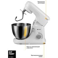Ультрасовременный и мощный стационарный миксер Kitfort KT-1330 поможет вам смешать ингредиенты, взбить яичный белок или сливки, приготовить картофельное пюре, соус, крем, мусс, замесить жидкое тесто для блинов и крутое для пельменей и пирогов.