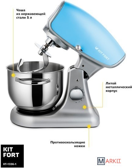 Markit » Кухонные комбайны, машины и планетарные миксеры » Планетарный миксер Kitfort KT-1336-1 (голубой)