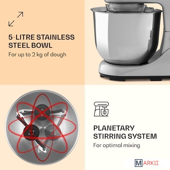 Markit » Кухонные комбайны, машины и планетарные миксеры » Планетарный миксер Klarstein Bella Pico 2G (серебристый)