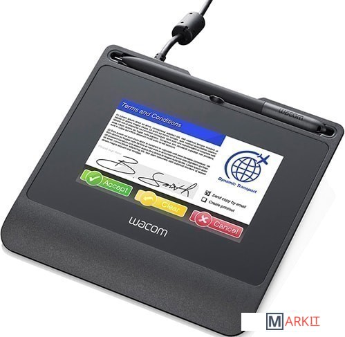 Основные особенности:- беспроводное перо без необходимости зарядки и батареек, позволяющее зафиксировать уникальную подпись и биометрические данные- закаленное стекло с антибликовым покрытием- аппаратное шифрование TLS (Transfer Layer Security)- поддержка работы в режиме виртуального COM-порта (VCP) обеспечивает совместимость с Citrix XenDesktop и XenApp v6.5+- технология WILL (Wacom Ink Layer Language)- функция UID (идентификатор уникальных аппаратных средств) предназначена для точной идентификации устройства, используемого для ввода каждой конкретной подписи и ввода других данных- STU SDK (комплект для разработки ПО)
