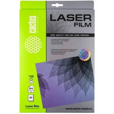 Пленка Cactus CS-LFA415050, A4 (210 x 297 мм), 150 г/м2, прозрачная (clear), 50 листов, односторонняя, для лазерной печати Код: 40415