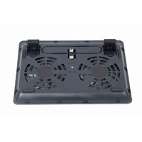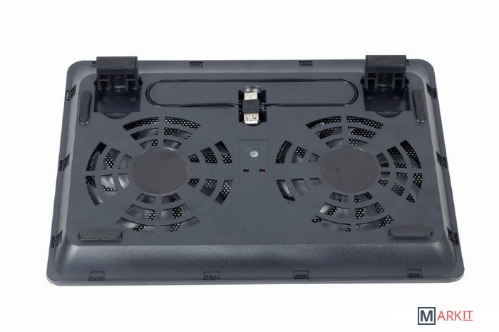 Компактная настольная подставка для ноутбуков до 15.6" с двумя вентиляторамиЭргономичный дизайн с подстройкой наклона для удобного угла обзораОхлаждение ноутбука двумя вентиляторами для предотвращения перегреваПроходной USB-разъем оставляет порт свободным для другого устройстваСветодиодная подсветка вентиляторов