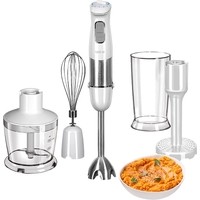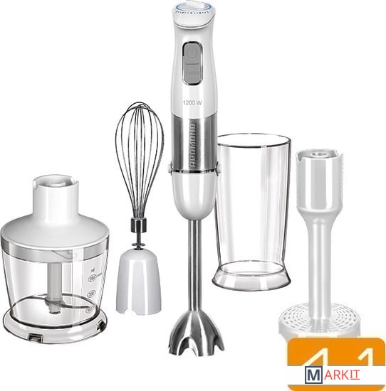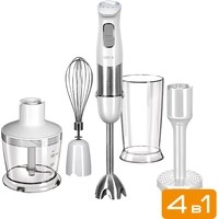 Комплектация:- блок электродвигателя- S-образный нож- насадка-блендер- переходник для насадки-венчика- насадка-венчик- насадка для приготовления пюре- чаша измельчителя с крышкой- стакан для смешивания- руководство по эксплуатации- сервисная книжка