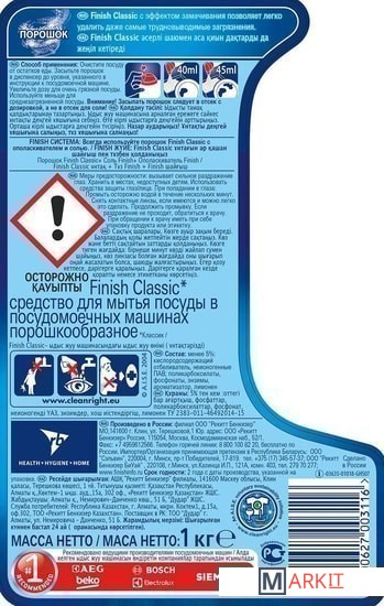 Markit » Средства для посудомоечных машин » Порошок для посудомоечной машины Finish Classic (1 кг)