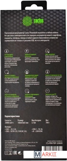 Markit » Портативные зарядные устройства » Портативное зарядное устройство CACTUS CS-PBHTBP-20800 (графит)