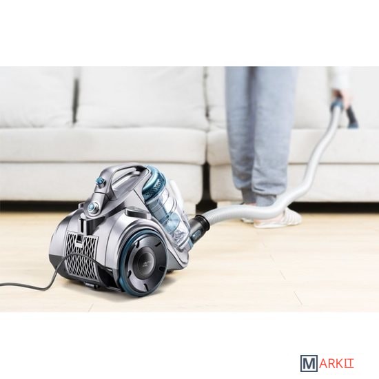 Двигатель мощностью 800 Вт и 23000 об / мин, сила всасывания - 17kPa.Технология мультициклона обеспечивает постоянную высокую мощность всасывания до полного заполнения резервуара. Каждый циклон имеет 2 воздухозаборника, которые создают высокую центробежную силу.Гибкий шланг из этиленвинилацетата.Входной HEPA-фильтр эффективно задерживает очень мелкие частицы и обеспечивает чистый отработанный воздух.Благодаря большой заслонке вы можете легко опорожнить пылесборник, открыв его над мусорным ведром с помощью одной кнопки. Все части пылесборника можно мыть водой, но перед сборкой их следует тщательно высушить.Круглую щетку можно вращать и регулировать. ВСТРОЕННЫЙ ДЕРЖАТЕЛЬ ДЛЯ ПРИНАДЛЕЖНОСТЕЙ. Крепится непосредственно к телескопической трубе, что позволяет держать самые маленькие аксессуары всегда под рукой.