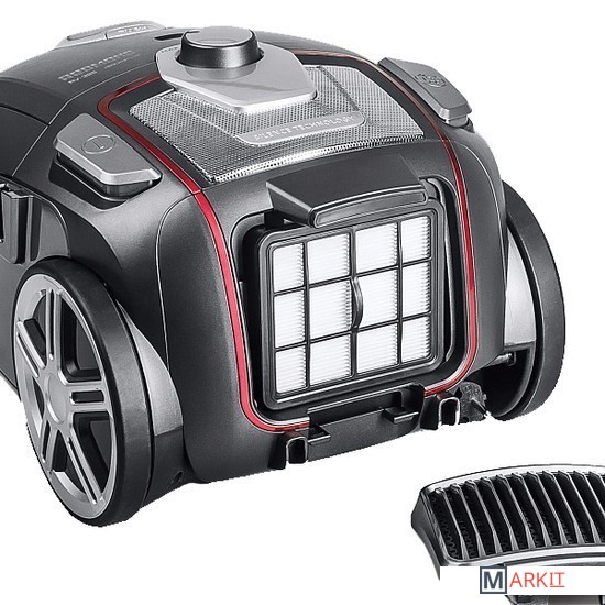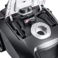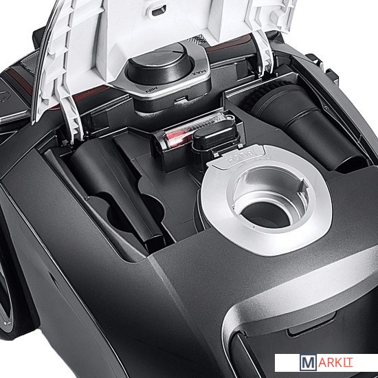 Пылесос оснащён индикатором заполнения пылесборника, который помогает следить за его состоянием. Дополнительное удобство придают возможность поворота шланга на 360 градусов и вертикальная парковка трубы с насадкой на корпусе пылесоса.