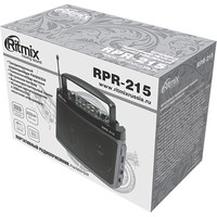 Ritmix RPR-215 – портативный трёхдиапазонный радиоприёмник, охватывающий в том числе и FM-диапазон. Дополнительная функция RPR-215 – воспроизведение mp3-файлов с карт памяти или USB-флэшки. Радиоприемник снабжен встроенной батареей.