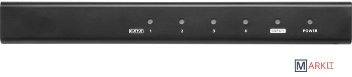 Соединяет одновременно один HDMI-источник с четырьмя дисплеями, оснащенными интерфейсом HDMIПоддержка функций HDMI (3D, Deep Color, 4K); совместимость с HDCP 2.2Поддержка HDRПоддерживает максимальное разрешение до 4096 x 2160 / 3840 x 2160 при 60 Hz (4:4:4)Передача сигнала на большие расстояния - до 15 м (1920x1200) / 1,8 м (True 4K)Максимальная частота пикселизации до 600 МГцМаксимальная скорость передачи данных до 18 Гбит/с (6 Гбит/с на каждую полосу)Светодиодная индикация состояния питания и устройствПоддержка EDID Expert – функция выбирает оптимальные настройки EDID для плавного включения, высокого качества отображения и использования лучшего разрешения видео, позволяя пользователю с помощью ползункового переключателя для EDID без усилий устанавливать необходимую настройку (Default, Port 1, Auto)Работа в режиме Plug and Play – не требуется установка программного обеспечения