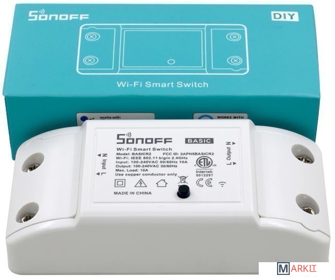 Sonoff BASIC R2 ETL - это обновленная версия Sonoff BASIC R2. В этой версии изменен внешний вид. Использован новый пластик при изготовлении корпуса. Добавлена возможность «DIY» и добавлен «ETL» сертификат, свидетельствующий о высокой безопасности продукта.Так как Sonoff BASIC R2 ETL разработан для DIY применения, то в отличие от BASIC R2 это устройство уже поддерживает «голосовые команды», благодаря чему Вы сможете управлять устройством как с помощью голосового управления через Amazon Alexa или Google Assistant, так и через приложение «eWeLink» установленное на Вашем телефоне или планшете.Учитывая, что Sonoff BASIC R2 ETL это уже DIY устройство, Вы так же сможете полностью переделать прошивку под Ваше применение.Sonoff Basic R2 - это обновление популярного Wi-Fi выключателя (реле) Sonoff Basic, который предназначен для управления любым электроприбором, розеткой или выключателем мощностью до 2200 Вт со смартфона. Основное отличие от Sonoff Basic - надежность, безопасность и удобство в использовании. Теперь корпус изделия выполнен из пластика PC V0, который, в отличие от ABS, наиболее термостойкий и прочный, а также обладает лучшей электроизоляцией. Это выключатель питания с дистанционным управлением по беспроводному подключению Wi-Fi, который можно подключать к широкому списку электроприборов. Sonoff Basic R2 передает данные на облачную платформу через WiFi-роутер, что позволяет пользователям удаленно управлять всеми подключенными устройствами через мобильное приложение eWeLink. Если у мобильного телефона есть беспроводная сеть (2G/3G/4G/WiFi), то пользователи могут удаленно управлять подключенными устройствами, выключая или выключая их из любого места и в любое время, а функция установки таймеров, могут включать таймеры обратного отсчета, расписания или цикла.Управление включением и выключением происходит через мобильное приложение как по локальной сети, так и удаленно через интернет подключение. Функциональное русскоязычное приложение eWeLink для iOS и Android позволит вам управлять всеми функциями устройства.Включение или выключение группы устройств одним нажатием.Установка таймеров расписания/обратного отсчета/цикла для включения или выключения в указанное время.Отслеживание состояния и статуса в мобильном приложении.Огнезащитный пластик предотвратит пожар при высоких темепературах.Совместимость с Amazon Alexa, Google Assistant, IFTTT, Google Nest.Поддержка множества устройств в одном приложении.Максимальный ток 10 АМаксимальная мощность 2200 Вт
