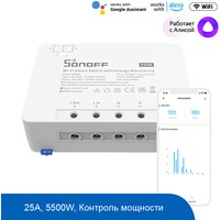 Sonoff POWR3 это интеллектуальный переключатель высокой мощности.25А /5500 В. POWR3 имеет наивысшую выходную мощность, чтобы сделать ваши мощные устройства интеллектуальными, или в качестве единственного комнатного счетчика для измерения энергопотребления.Измерение энергопотребления. Следите за активной мощностью, током и напряжением ваших устройств в приложении.Защита от перегрузки. При обнаружении неисправности питание будет отключено, чтобы избежать повреждения устройства и возникновения опасности.Дистанционное включение/выключение одним нажатием. Может отключать электричество, где бы вы ни находились, что может обеспечить безопасность ваших приборов и сэкономить на скрытых счетах за электроэнергию.Голосовое управление. Совместимость с Amazon Alexa, Google Assistant, SmartThings и Алиса.