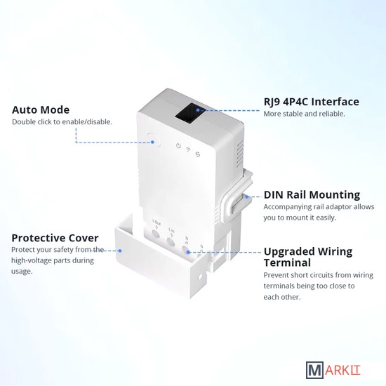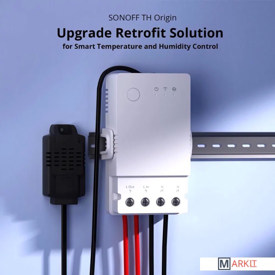 Sonoff TH Origin THR320 - это умное Wi-Fi реле, с функцией мониторинга температуры и влажности (датчики приобретаются отдельно), которое позволяет удаленно контролировать и устанавливать температуру и влажность, для включения/выключения электроприборов. Модель является обновлением версий Sonoff TH10/20.Напряжение питания 100-240 В, 50/60 ГцКоммутируемый ток 20 АКоммутируемая мощность 4400 Вт (резистивная нагрузка)Поддерживаемый тип датчика DS18B20, AM2301, Si7021, THS01 до 60 м.Разъем подключения датчика RJ-9 (телефонный разъем 4P)Частота Wi-Fi 2.4GHz (IEEE 802.11 b/g/n)Рабочая температура -10 °C- 40 °CВлажность 5% -95%Материал корпуса PC V0 (трудно горючий пластик)Размер 98x54x31 мм