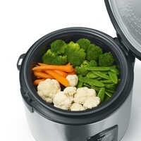 Удивите своих гостей идеальным воздушным рисом без липкости и овощами, приготовленными на пару. Создавайте вкусные блюда быстро с помощью рисоварки и пароварки для овощей, мяса, рыбы и картофеля. После приготовления блюдо автоматически остается теплым.Мерный стакан и ложка для риса с держателемСъемный шнур питанияКнопка открытия крышки, крышка с ручкойЕмкость для сбора лишнего конденсатадвухпозиционный переключатель