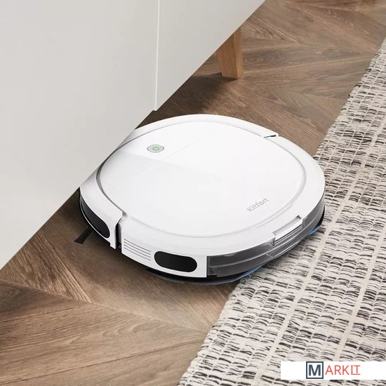 Управление уборкой через мобильное приложение Smart Life или TuyaПриложение поможет вам в управлении современным роботом-пылесосом Kitfort КТ-5116 со смартфона по сети Wi-Fi. Находясь вне дома, вы можете дистанционно запустить уборку, настроить график уборки, поменять мощность, посмотреть карту уборки помещений и т.дСухая и влажная уборкаМожно провести влажную уборку, прикрепив к пылесосу моющий модуль с резервуаром для воды, держателем тряпки и тряпкой. Тряпка автоматически увлажняется во время уборки встроенной электрической помпой.Автоматическая зарядка от базыКогда заряд аккумулятора будет заканчиваться, пылесос сам разыщет базу и встанет на зарядку. Также вы самостоятельно можете вернуть пылесос на базу, дав ему команду с пульта управления или из мобильного приложения.Построение карты помещенияРобот-пылесос строит карту помещения и отображает ее в мобильном приложении. Таким образом, вы можете дистанционно оценить текущую уборку помещения.Пройдёт везде!Одно из главных преимуществ модели КТ-5116 - низкий корпус, благодаря которому пылесос сможет убираться под мебелью с короткими ножками.Датчики препятствий и поверхностиБлагодаря специальным датчикам, которые срабатывают на вертикальные препятствия и при столкновении с препятствием, пылесос меняет направление движения и продолжает уборку. А благодаря датчикам поверхности прибор не упадёт с больших перепадов высоты.Современный фильтр и простой уход за пылесосомВ пылесборнике стоит высокоэффективный фильтр тонкой очистки, обеспечивающий хорошую очистку засасываемого воздуха от пыли. Пылесборник легко вынимается: достаточно поднять ручку пылесборника и вытащить его из корпуса пылесоса.