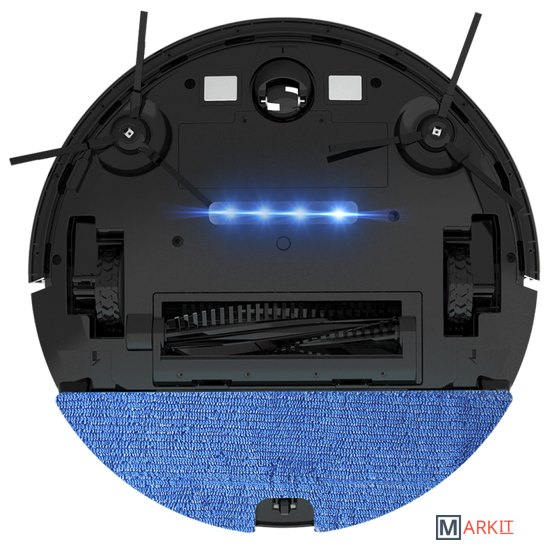 док-станция; зарядное устройство; контейнер для пыли и воды; щетка для твердых полов; щетка для чистки; пульт управления; салфетки для влажной уборки; дополнительные боковые щетки