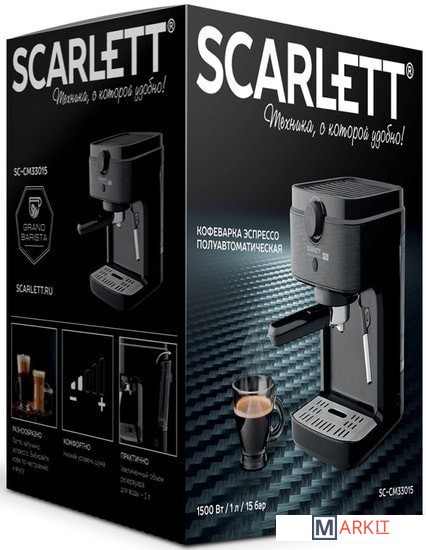 Markit » Кофемашины и кофеварки » Рожковая помповая кофеварка Scarlett SC-CM33015