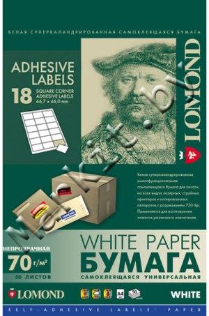 Самоклеящаяся бумага LOMOND (2100135) A4, 18 дел (66,7x46мм), 50 листов Код: 3558