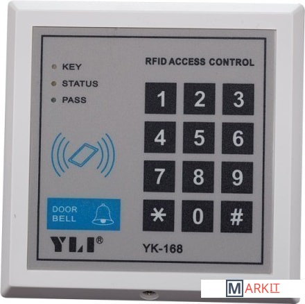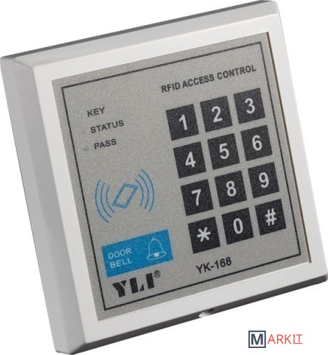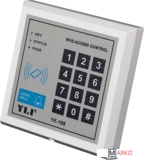 Rfid/Цифровая клавиатура YK-168. Встроенный считыватель RFID на 250 кодов и 250 карточек. NO/NC/COM выходы. Тип ID карты 125KHz, ID. Память 250 кодов и карт и 1 общий код.