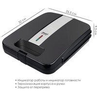 Антипригарное покрытие. Пластины «Гриль».Фиксатор.Хранение в вертикальном положении.Световой индикатор работы.Световой индикатор готовности использования.Дополнительная термоизоляция корпуса.Кабель питания: 68 см.