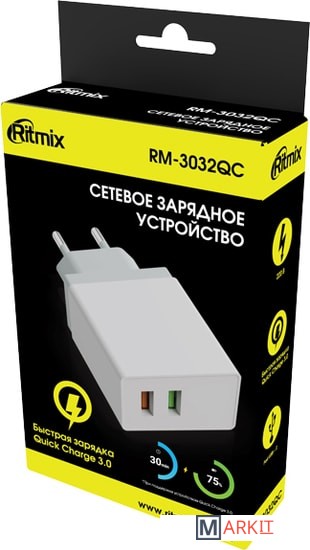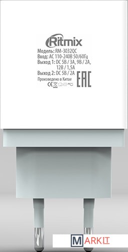 Markit » Зарядные устройства » Сетевое зарядное Ritmix RM-3032QC