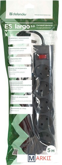 Markit » Стабилизаторы, сетевые фильтры, удлинители » Сетевой фильтр Defender ES largo 5 (черный)
