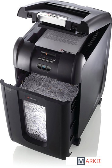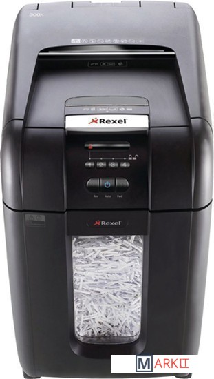 Шредер Rexel AUTO+ 300x с поперечной резкой P-4-й степени секретности для ипользования в офисе. Уничтожает автоматически до 300 листов за одну загрузку. Оснащен функцией автоматического удаления замятых листов и функцией ручного реверса, индикатороми открытой дверцы, полной корзины и охлаждения, окошком мусорной корзины, колесиками для удовства перемещения.