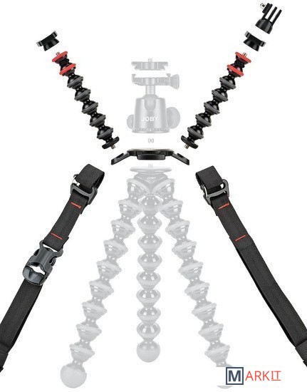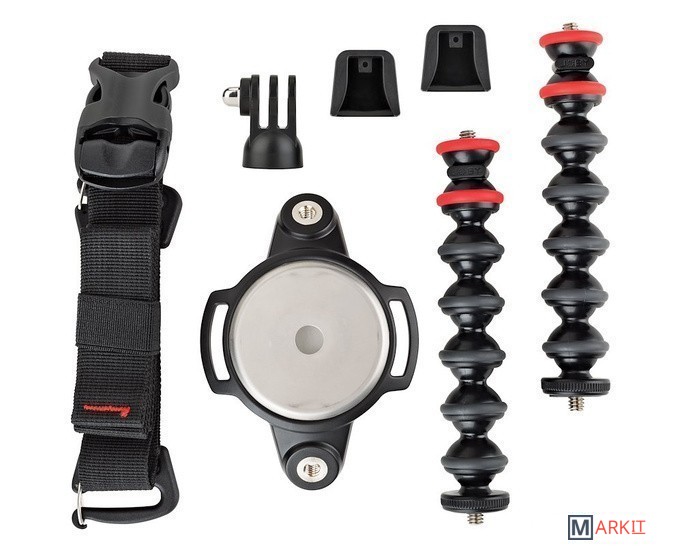 | Комплектация | - 2 кронштейна GorillaPod, крепления 1/4''-20- Съемный адаптер Hub Plate с двумя креплениями с резьбой 1/4”-20- Ремень шириной 2,54 см для удобства переноски и крепления |