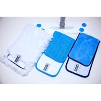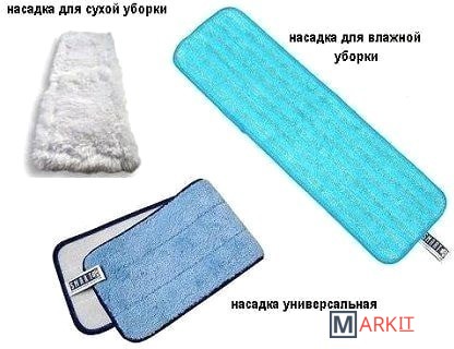 Комплектация швабра, 3 тряпки для сухой уборки(белая и пушистая) и для влажной уборки (плотная голубая) и универсальная насадка (пушистая голубая)