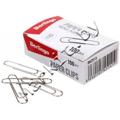 Markit » Канцтовары » Настольные принадлежности » Скрепки, кнопки, зажимы, булавки, резинки для банкнот » Скрепки Berlingo, 50 мм, 100 шт., округлые, никелированные